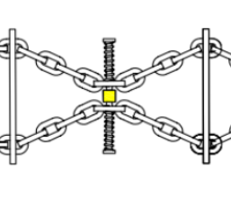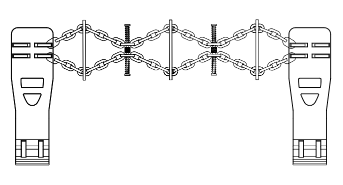 Die Kette wird in der kleinsten Konfiguration geliefert und deckt eine Reihe von Reifen innerhalb eines bestimmten Abrollumfangsbereichs ab; um Reifen mit einem größeren Abrollumfang zu montieren, muss die Kette verlängert werden.