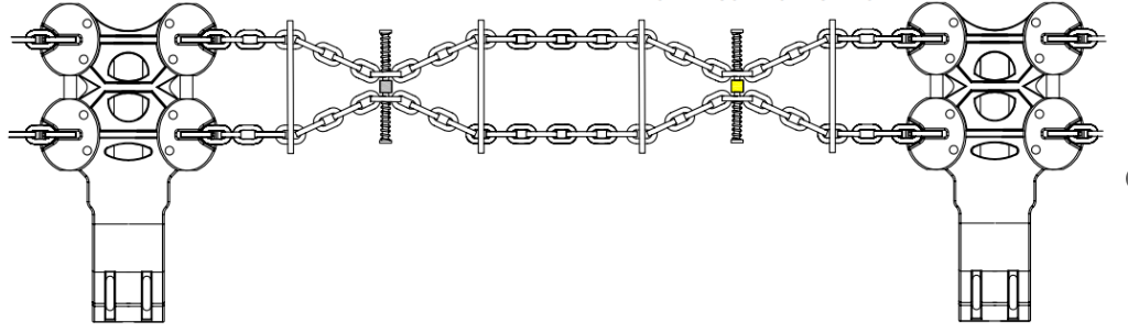 K-Summit MAX (K34 bis K56) gibt es 4 Verstellelemente mit gelber Buchse, eines für jeden Kettenstrang, die zwischen zwei Laschen angeordnet sind.