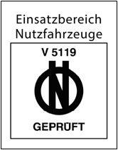 - Bei außen montierten Schneeketten (König K-Summit Pro) befindet sich die Kennzeichnung nach Ö-Norm V5119 auf dem Klebeetikett am Kunststoffgehäuse: