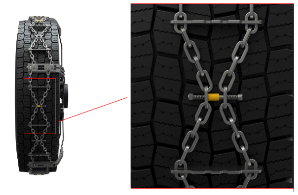 It is important that K-Summit chains remain adhered to the tyre in order to maintain a low dynamic profile, so we recommend that you do not remove too many adjustment elements. This would only facilitate the positioning of the chain which, once in place, will remain loose.