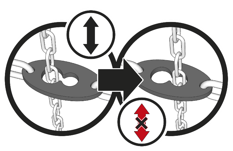 When you have to fit your König Coach Master chains, make sure that the fastener is unlocked. Just check that the tensioning chain runs freely in the widest hole and that it is not stuck in the narrowest hole of the fastener.