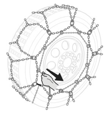 Now continue with the vehicle by making ¼ turn of the wheel. This will release the tensioning chain from under the wheel.