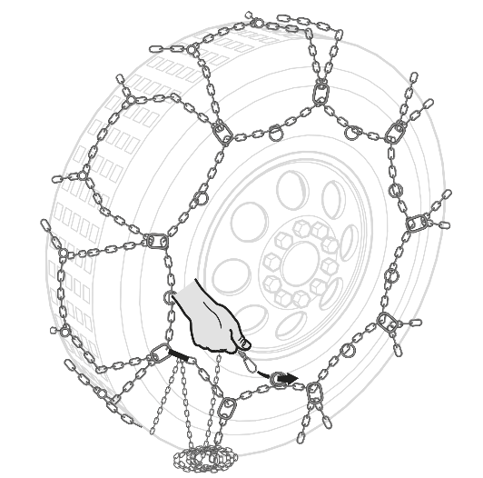 We do not recommend over-tensioning the chain at this stage: in fact, the chain should not be too tight during the first few metres of driving, so that it is evenly distributed across the tyre.