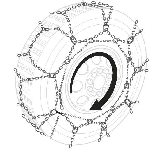 Drive your vehicle at very low speed for a few metres so that the rear rigid arch and the chain have a chance to position and balance correctly on the tyre.