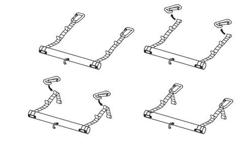 Each webbing can be matched to the carabiner in three different positions.