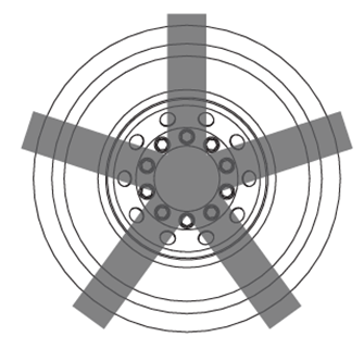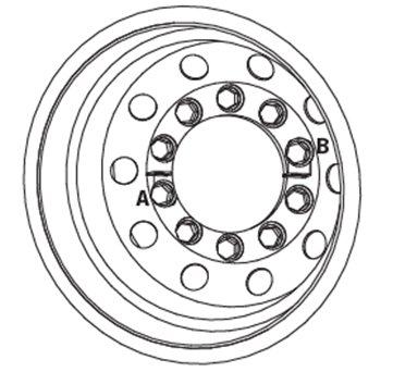 First, unscrew two wheel nuts symmetrically across the diameter (for simplicity, we recommend working on the horizontal diameter), one on the opposite side of the rim to the other