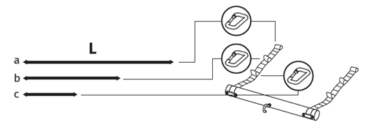 Configuration B: Medium, clip the carabiner in the middle position