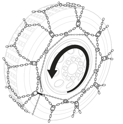 Drive your vehicle at very low speed for a few metres so that the rear rigid arch and the chain have a chance to position and balance correctly on the tyre.