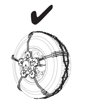 It is important that K-Summit chains remain adhered to the tyre in order to maintain a low dynamic profile, so we recommend that you do not remove too many adjustment elements. This would only facilitate the positioning of the chain which, once in place, will remain loose.