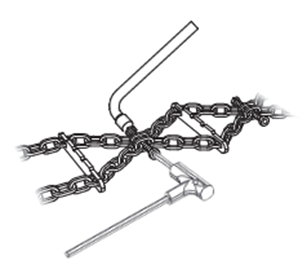 La chaîne ne doit être réglée qu'une seule fois avant la première installation, ou si vous changez de taille de pneu ou de véhicule.