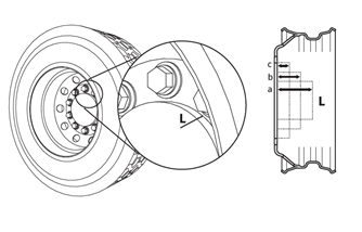 Attention : Avant d'utiliser la chaîne, mesurez ou vérifiez la saillie du moyeu du véhicule par rapport à la jante. La chaîne à neige K-Summit Pro est compatible avec des moyeux d'une saillie maximale de 175 mm.