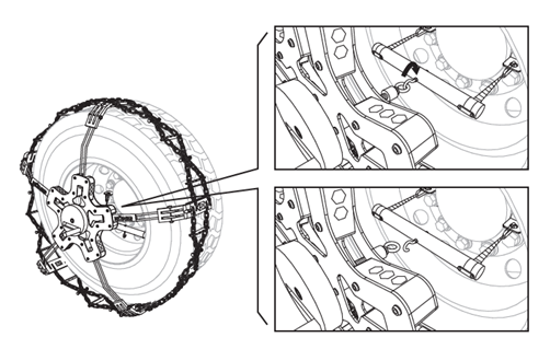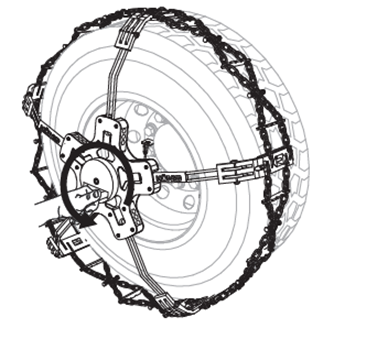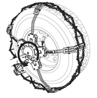 La chaîne est livrée dans la configuration la plus petite et couvre une gamme de pneus dans une certaine plage de circonférence de roulement ; pour monter des pneus avec une circonférence de roulement plus grande, la chaîne doit être rallongée.
