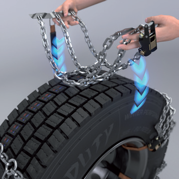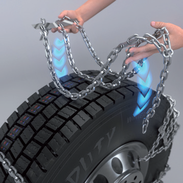 Gdy poziom zużycia przekroju poprzecznego drutu ogniwa łańcucha osiągnie około 50%, nie zaleca się używania łańcucha. Zużyte ogniwa mogą nie wytrzymać ciężaru pojazdu i naprężeń związanych z jazdą i pęknąć.